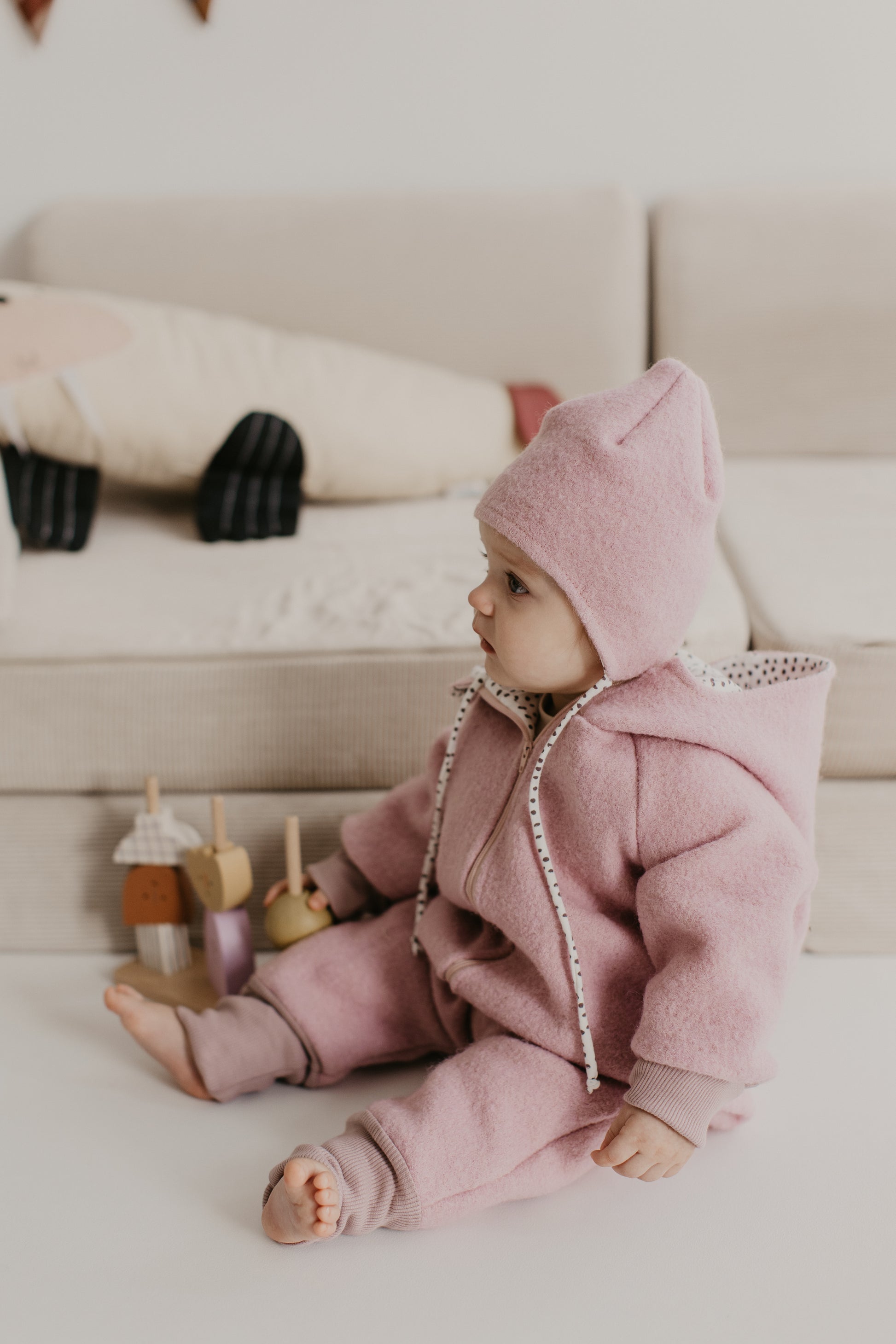 in Wollwalkoverall ist wegen seiner hochwertigen Materialien und tollen Eigenschaften der ideale Begleiter für dein Kind im Winter.